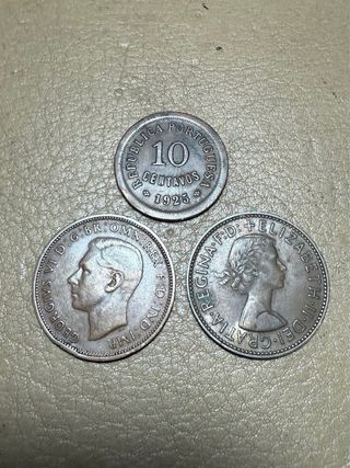 Monete di diversi paesi di un tempo. Includono tra le altre: - Dirham Marocchini 1980 - Australi Argentini 1990 - Peniche Inglesi 2002 - 50 centesimi 1949 - 25 centesimi 1927 - Peseta 1982 - Monete varie. Ascolto offerte.