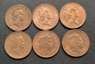 Lotto di 6 monete UK 1 penny 1986-2012 Elisabetta II