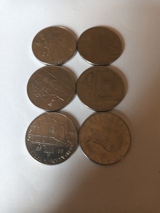 Due monete commemorativi da 200 lire, in buone condizioni. Sono relativi all'evento sportivo svoltosi a Genova nel 1992. - Sono due pezzi. - Sono in metallo dorato. - Sono in ottime condizioni.