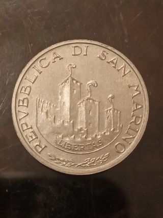 Moneta da 100 Lire di San Marino del 1997. - Dritto: Ritratto di San Marino. - Rovescio: Rondine in volo con la mappa dell'Europa. - Anno: 1997. - Zecca: San Marino.