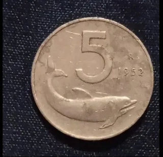 Moneta 5 Lire Delfino 1952 Italia