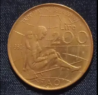 Moneta da 200 Lire FAO del 1980. - Emissione speciale FAO. - Anno di conio: 1980. - Valore nominale: 200 Lire.