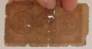 Buono di cassa da due lire emesso in Italia. Presenta il ritratto di un personaggio storico e dettagli decorativi. - Emissione: 18 Agosto 1914 - Valore: 2 Lire - Ministero del Tesoro