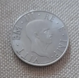 Moneta da 5 Lire del Regno d'Italia, in argento, coniata nel 1929. "Aquilotto".