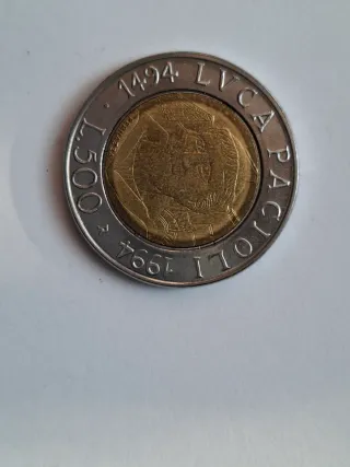 Bellissima moneta da 500 lire italiane coniata nel 1994 e raffigurante Luca Pacioli. Si presenta in ottime condizioni. - Moneta commemorativa - 500 lire italiane - Anno di conio: 1994 - Immagine di Luca Pacioli