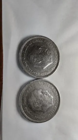 VENDO: Lotto n. 8 7 monete Franco da 25 Ptas. 1957*61 (MOLTO RARE). BUONo STATO DI CONSERVAZIONE, INCAPSULATE E IN SACCHETTI DI PLASTICA INDIVIDUALI PER EVITARE GRaffi. (CREO LOTTI PER SPEDIZIONI PIÙ ECONOMICHE)