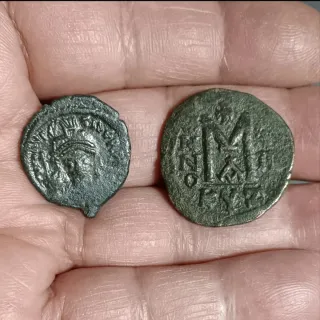 Due monete bizantine di Giustiniano I ( 527-565 d.C. ) - Moneta da 20 Nummi, (1/2 follis) - Peso: 5,61 gr - Diametro: 25,6 mm - Legenda: - DN IVSTINIANVS PP AVG. - ANNO / K - Indice di rarità 92/100 - Valore: €49 - Moneta da 40 Nummi, (1 follis) - Peso: 11,76 gr - Diametro: 29,0 mm - Legenda: - DN IVSTINIANVS PP AVC. - ANNO / XII / KIZ - Indice di rarità 92/100 - Valore: €76 - Valore complessivo €125 - Molto rare - Ottimi rilievi - Come da immagini