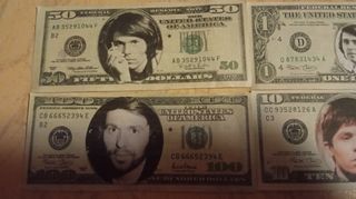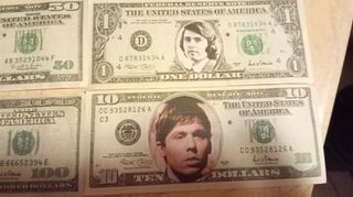 Lotto di 4 banconote con ritratto di Raphael. - Banconota da 1 dollaro. - Banconota da 10 dollari. - Banconota da 50 dollari. - Banconota da 100 dollari.