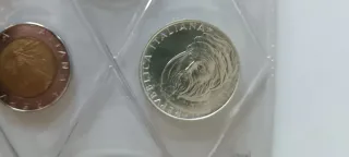 Divisionale 11 monete fiordiconio Italia 1986, composto da 1 lira, 2 lire, 5 lire, 10 lire, 20 lire, 50 lire, 100 lire, 200 lire, 500 lire bimetallica, 500 lire argento Caravelle e 500 lire argento VI Centenario nascita Donatello. Sigillate in folder trasparente da collezionismo Zecca dello Stato.