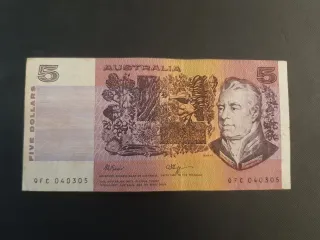 Banconota Australia da 5 dollari. Numero di serie interessante: QFC 040305 Circolata ma in ottime condizioni come da foto.