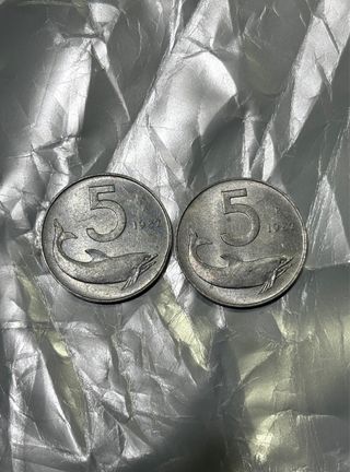 2 Monete da 5 Lire Delfino 1982