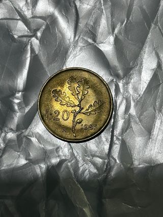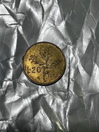 Moneta italiana da 20 Lire del 1985. Ramo di quercia con ghianda.
