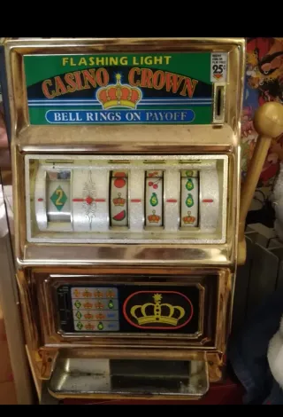 Waco Casino Crown Slot Machine. slot machine giocattolo vintage prodotta in Giappone da Waco negli anni '70. Caratteristiche principali: Presenta una luce lampeggiante (Flashing Light) che funziona con due pile medie e una campana che suona quando si vince (Bell Rings On Payoff). Si utilizzavano le vecchie 200 lire masi può giocare anche senza monete.
