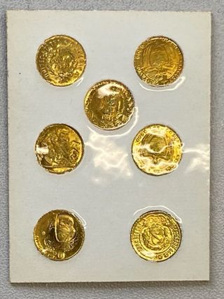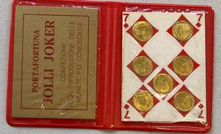 Set di monetine Settebello in confezione. - Portafortune con riproduzioni di monete,placate oro