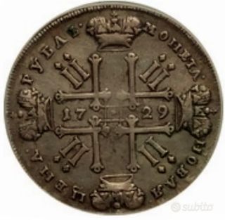 Moneta storica russa. - Rublo Russo. - Imperatore Pietro II. - Anno 1729.
