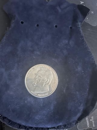 Moneta commemorativa da 5 Marchi del 1932, coniata nella Repubblica di Weimar. - Dritto: Aquila imperiale tedesca. - Rovescio: Scritta DEUTSCHES REICH 1832 1932 FUNF REICHSMARK.