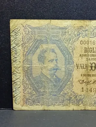 Raro biglietto di stato da 5 Lire del Regno d'Italia, emesso nel 1911. Un pezzo da collezione con un design dettagliato. - Periodo Vittorio Emanuele III con ( Eggie di Umberto I). - Valore 5 Lire Biglietto di Stato - Decreto del (21-1-1911) - Firme ( dell' Ara Altamura). - Serie (921) - Numero di Banconota (062969) - Rarità in (R2). - Qualità in ( MB).