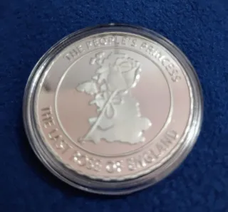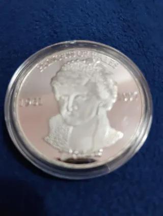 Moneta commemorativa dedicata a Lady Diana, Principessa del Galles. Dimensioni 39 mm x 1,57 mm Peso 24 grammi circa Materiale Argento 925 - Raffigura il profilo della Principessa. - Anni incisi: 1961-1997.