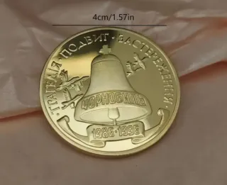Moneta commemorativa dedicata all'evento di Chernobyl. - Raffigura una campana con iscrizione Chernobyl. - Riporta le date 1986-1996. - Sul retro, un operaio con maschera antigas e la centrale nucleare. - Indicata la data 26 APRILE 1986.
