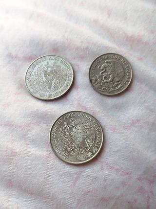 Lotto composto da tre monete messicane. - Due monete da 1 Peso, coniate nel 1970 e 1971. - Una moneta da 50 Centavos, coniata nel 1967.