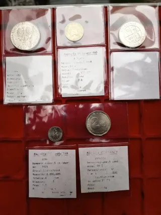 13 Monete da 5 Marchi ciascuna in argento 720 in condizioni perfette emesse nel: 1968 Jhon Gutenberg 1970 Ludvig Van Bethoveen 1974 Anniversario Legge Fondamentale (Grundgesetz) 1974 Nascita di Immanuel Kant 1975 Friedrich Ebert 1975 Nascita di Albert Schweitzer 1976 Von Grimmelshausen 1977 Nascita di Enrich von Kleinst 1978 Nascita di Gustav Stressman 1983 Nascita di Martin Luther 1984 Anniversario Unione doganale tedesca 1984 Felix Barthody 1985 European year of music