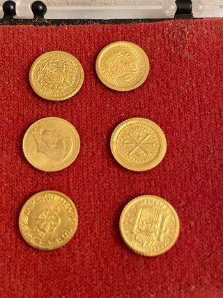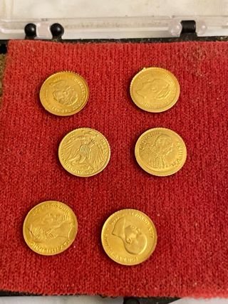N. 6 monete SOUVENIR "la moneta (IN BAGNO) d'oro più piccola del mondo" MEXICO - Design dettagliato su ogni moneta. - Ideali per collezionisti o come elementi decorativi.