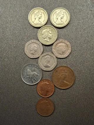 Lotto di diverse monete inglesi coniate tra il 1959 e il 2000. - Monete con ritratto di Elisabetta II. - Diverse denominazioni presenti.