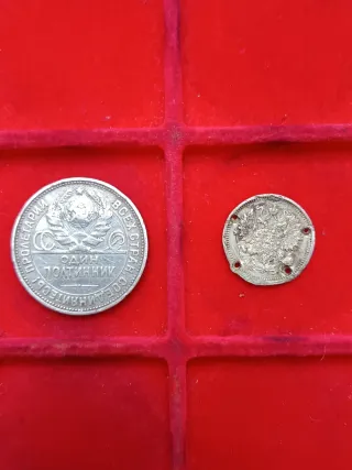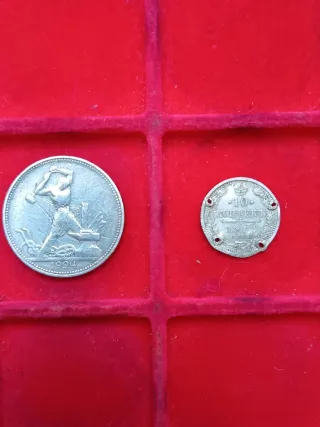 RUSSIA 2 Antiche Monete in Argento 50 Kopeks del 1924 e 10 copechi del 1913. - Moneta da 50 Kopeks del 1924. - Moneta da 10 Kopeks del 1913.