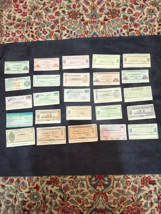Lotto composto da 25 miniassegni italiani risalenti agli anni '70. - Pezzi da collezione. - Vari tagli e istituti bancari.