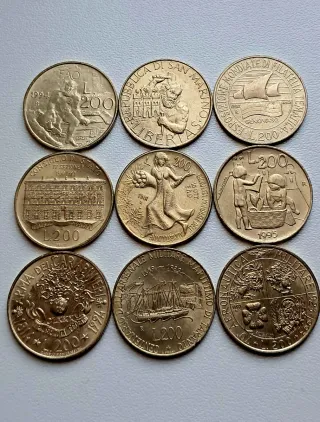 Lotto 9 pezzi Lire 200 Commemorative Italia