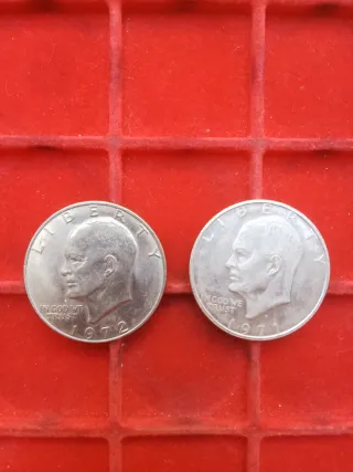 STATI UNITI D'AMERICA 2 MONETE ONE DOLLAR 1971 MAGNETICA E 1972 ANTIMAGNETICA. Quella antimagnetica: Paese USA Periodo Stati Uniti d'America 1951 - 1980 Valuta Dollaro USA Tipo di moneta Monete circolanti Valore 1 dollaro Anno 1971-1978 Soggetto Dollaro Eisenhower Composizione Rame placcato Rame-Nichel Tipo di bordo Zigrinato Forma Rotonda Allineamento Moneta (180°) Peso (g) 22,9 Diametro (mm) 38,1 Spessore (mm) 2 NumeroKM# 203 Dritto Capo di Stato Descrizione Dwight D. Eisenhower (34º Presidente degli Stati Uniti d'America)