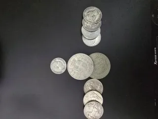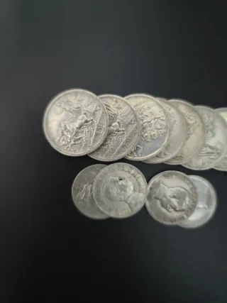Lotto composto da 10 monete in argento. - Peso totale: 120 grammi. - Materiale: Argento.
