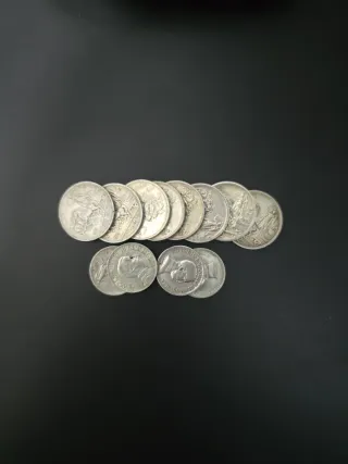 Lotto composto da 15 monete spagnole da 5 Pesetas, coniate nel 1957. - Valore nominale: 5 Pesetas - Anno di coniazione: 1957 - Provenienza: Spagna