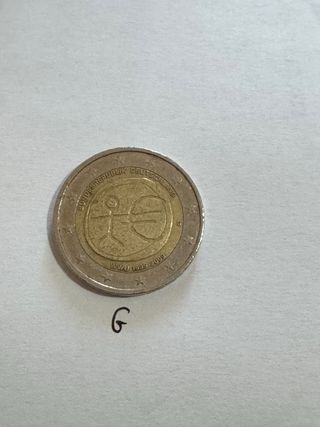 Moneta €2 commemorativa Germania, zecca G (Karlsruhe) 2009 circolata. 10° anniversario dell'Unione economica e monetaria.