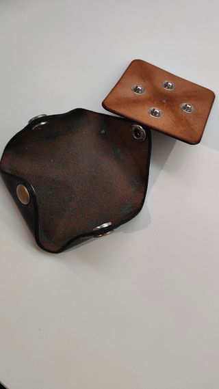 Portamonete fatto a mano in vera pelle. - Design compatto e funzionale. - Chiusura a bottone. - Finitura artigianale.