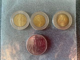 Vendo quattro monete da 200 lire commemorative - Esposizione di filatelia e tematica 1992 - 70° Aeronautica militare Italiana 1993 - Arma dei Carabinieri 1994 - Centenario dell'accademia di Guardia di Finanza 1996