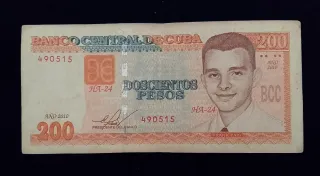 Banconota da 200 pesos cubani, emessa nel 2010. - Banconota da 200 pesos cubani. - Anno di emissione: 2010. - Presenta il ritratto di Frank País. - Serie HA-24. Banconota circolata, la prima data di questa tipologia, condizione BB Rara