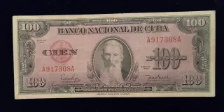 Banconacional de Cuba 100 pesos, serie 1959. El billete muestra el retrato de Aguilera. - Denominación: 100 Pesos - Serie: 1959 - Banco: Banco Nacional de Cuba - Impreso por: American Bank Note Company Banconota circolata in ottimo stato, solo+ q'fds