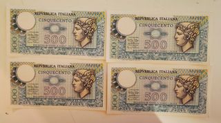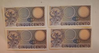4 Banconote da lire 500 nuove in serie consecutiva: da 501923 a 501926.