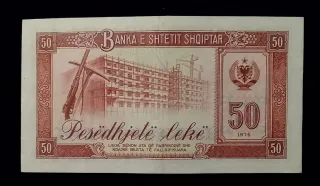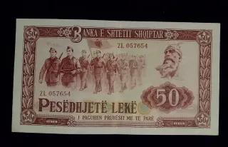 Banconota da 50 Lekë emessa dalla Banca di Stato Albanese nel 1976. - Valore: 50 Lekë - Anno: 1976 - Paese: Albania - Serie: ZL 057654