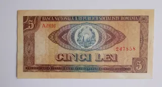 Banca Națională a Republicii Socialiste România, 5 Lei, anno 1966. - Serie A. - Valore: CINCI LEI. - Numero di serie: A.0016 / 247858. - Falsificare queste banconote è punibile secondo la legge.