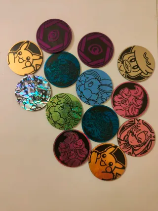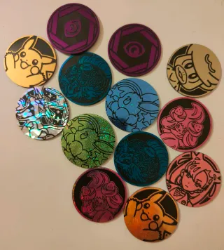 Set di monete Pokémon con vari disegni. - Monete colorate con personaggi Pokémon. - Design unici su ogni moneta.
