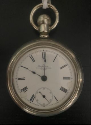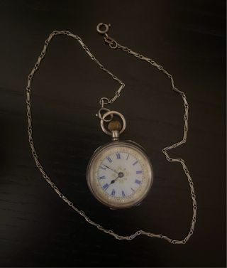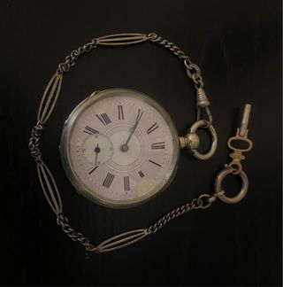Bellissimo orologio da tasca antico, in ottime condizioni. - Meccanismo a carica manuale. - Cassa in metallo argentato. - Quadrante smaltato color crema. - Include catena. Funzionante