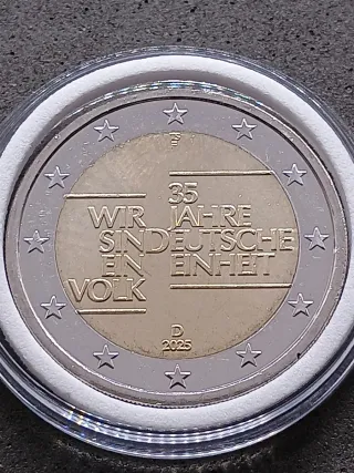 Moneta commemorativa da 2€ della Germania, coniata nel 2025 per celebrare il 35° anniversario dell'Unificazione. - Design speciale Wir sind ein Volk (Siamo un popolo). - Anno di emissione: 2025. 72