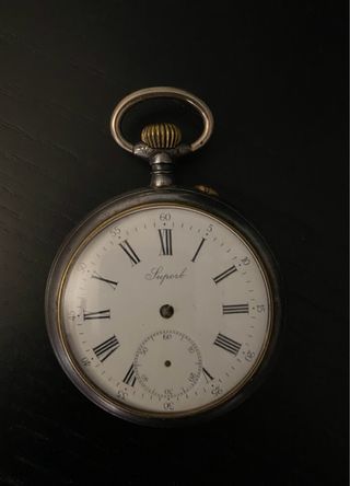 Orologio da tasca Superb con quadrante bianco e numeri romani. - Quadrante secondario per i secondi. - Cassa in metallo con finiture argentate e dorate. - NON FUNZIONANTE