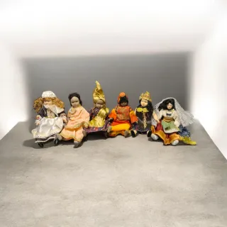 Marchio Dolls in the World (1980–1989) Queste splendide 6 bambole di porcellana sono realizzate con materiali di alta qualità fedeli alla cultura del loro paese. Perfetta per i collezionisti o come regalo per una persona speciale. Nuove ma senza confezione.