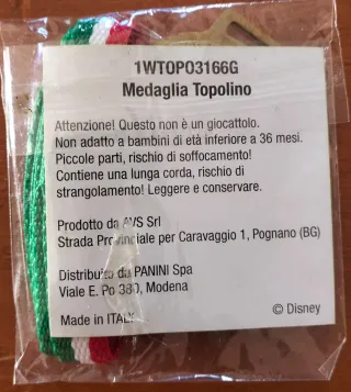 Medaglia celebrativa dei Grandi Campioni con Topolino Disney. Include un nastro tricolore. - Medaglia in metallo con personaggio Disney. - Nastro con i colori della bandiera italiana.