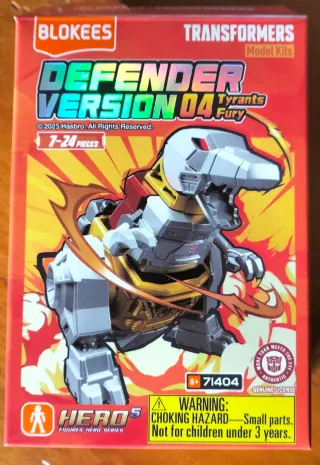 Set di modellini Blokees Transformers Defender Version 04 Tyrants Fury. - Include un kit di montaggio per il veicolo Wheeljack. - Pezzi: 7-24. - Serie Hero. - Prodotto da Hasbro nel 2025.