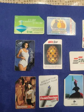 Collezione di schede telefoniche SIP, alcune di queste sono edizioni speciali. - Scheda SE TI GIRA DI SPICCARE 5.000 - Scheda I DIZIONARI SIMONE 10.000 - Scheda NON PERDERTI IN CHIACCHERE! 5.000 - Scheda SIP con un uovo decorato 5.000 - Scheda INSIEME Telecomunicazioni per il Sociale 5.000 - Scheda RIVESONDOLF PRESEPE VIVENTE 5.000 - Scheda ALLA SEGRETERIA DEDICA UNA POESIA 5.000 - Due schede Carabinieri con immagine di un carabiniere 5.000-10.000 - Scheda Anthesis 10.000