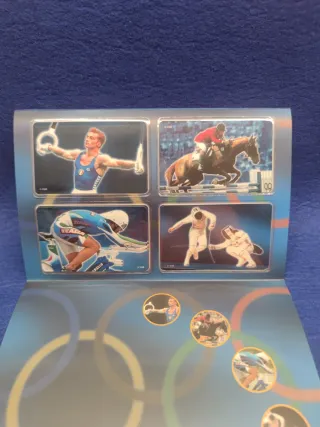 Set di 4 schede telefoniche Gli Ori Olimpici a tiratura limitata 55.000 mila pezzi. Schede telefoniche nuove ma con OCR rovinato o sbiadito. - Scheda 1: Giovanni Parisi, Pugilato, 1966. - Scheda 2: Pietro Mennea, Atletica 200m, Mosca 1980. - Scheda 3: Nuoto Pallanuoto, Squadra Italiana, Barcellona 1992. - Scheda 4: Vincenzo Maenza, Lotta Greco Romana 48kg, 1988. - Scheda 5: Jury Chechi, ginnastica anelli, Atlanta 1996. - Scheda 6: Graziano Mancinelli, Equitazione salto a ostacoli, Monaco 1972. - Scheda 7: Andrea Colli elli, ciclismo inseguimento individuale, Atlanta 1996. - Scheda 8: Giovanni Trillini, Scherma fioretto individuale,